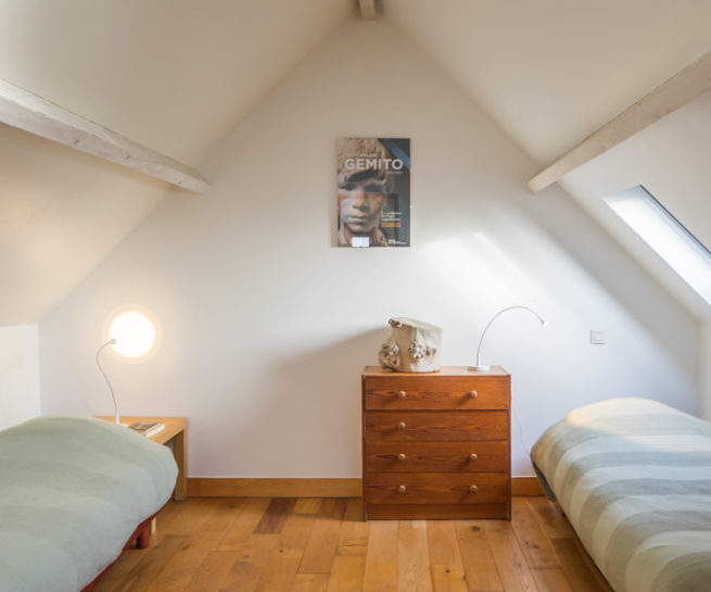 - 1 chambre à l’étage avec deux lits simples.